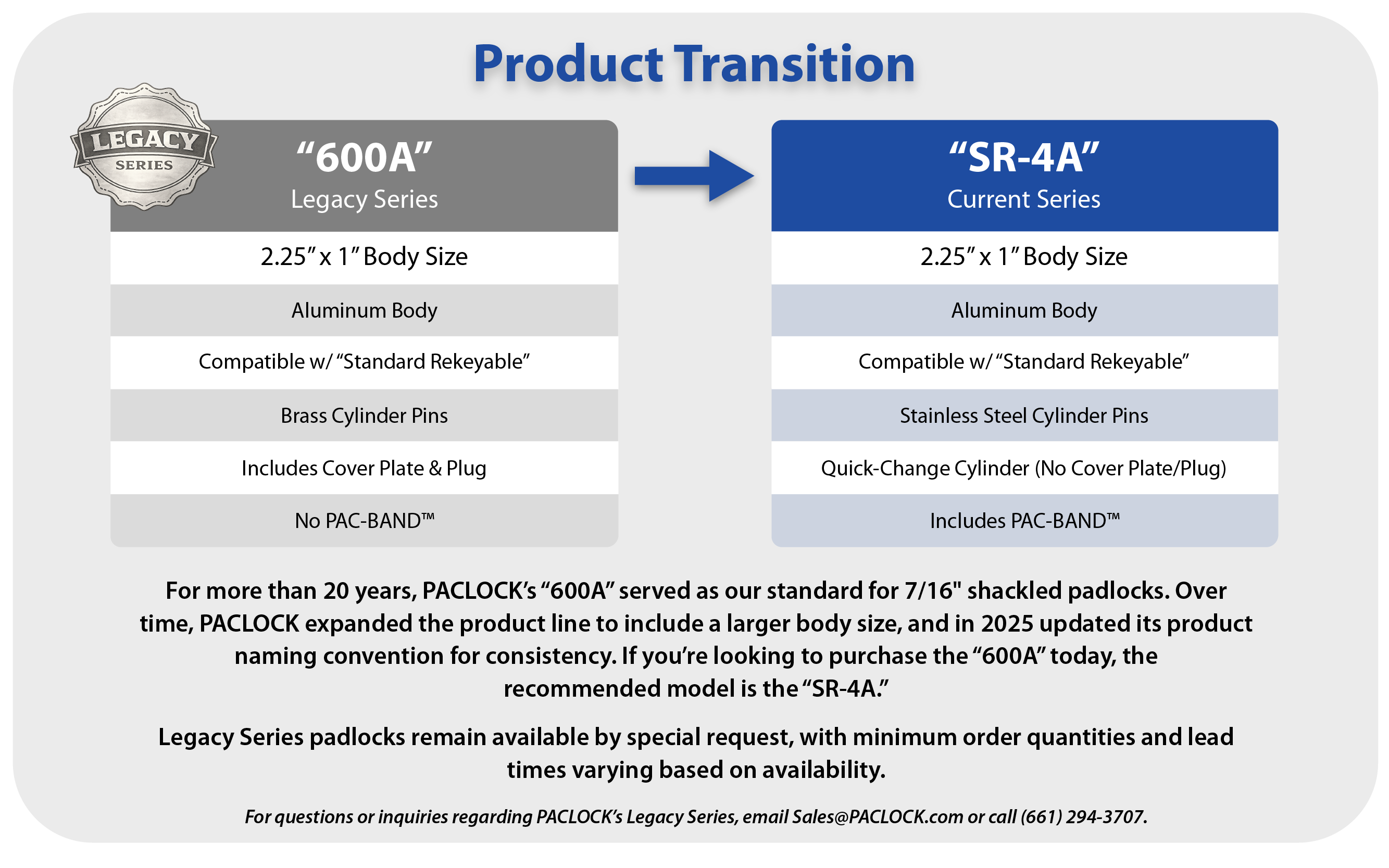 The “600A” is part of PACLOCK’s original Legacy Series and is now offered only in limited, special-order situations. Minimum order quantities and lead times vary based on availability. Please contact PACLOCK directly for inquiries, or learn more about the Legacy Series and recommended replacement products.