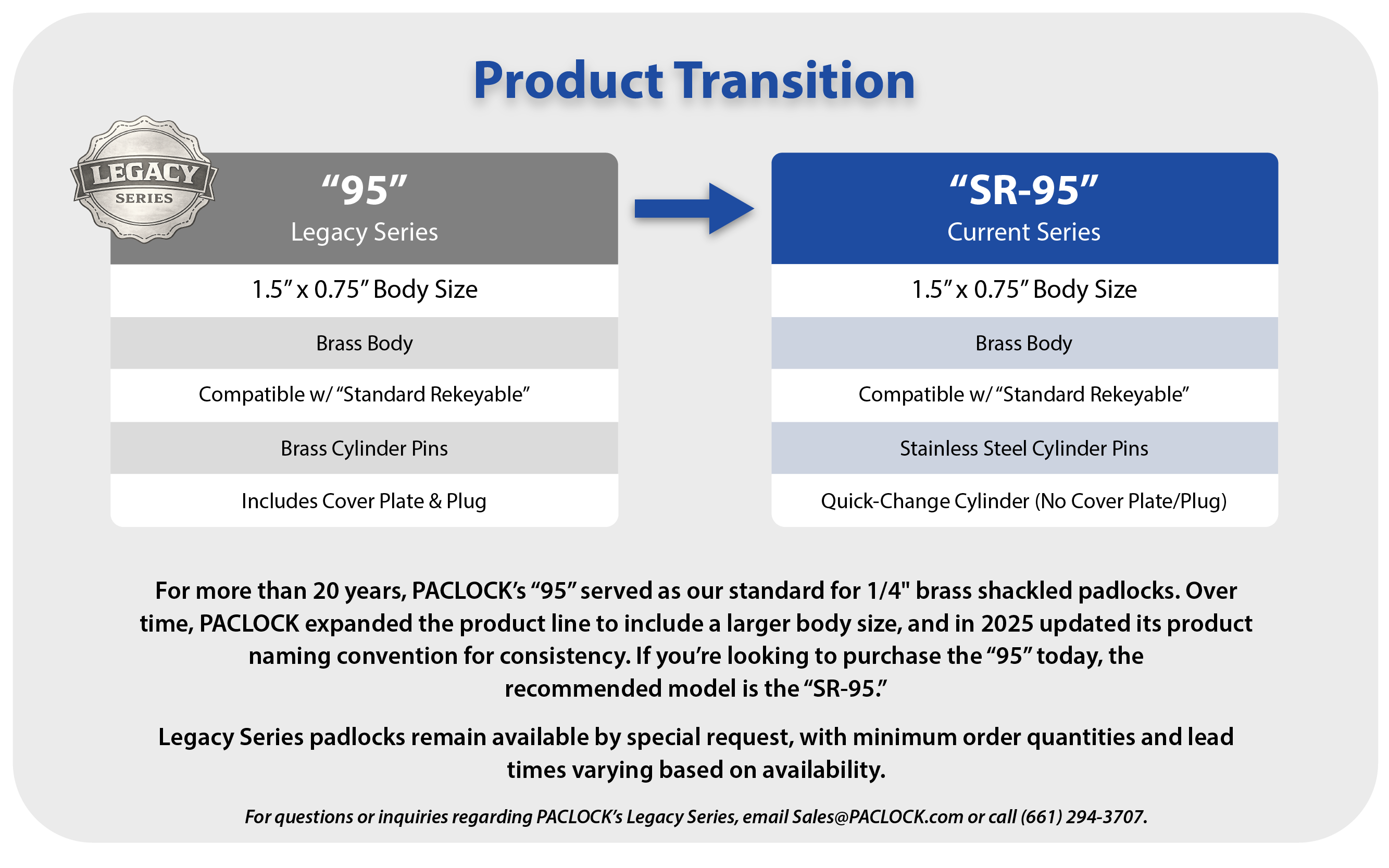 That means you can upgrade to PACLOCK — and start benefiting from quality manufacturing, faster lead times, and better durability — without replacing all your current padlocks. It’s the easiest way to switch without the high cost or hassle.